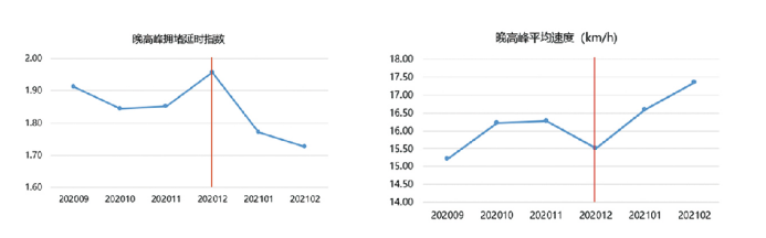 互联网产业园治理指标:工作日早高峰拥堵指数下降7.12%,早高峰平均速度提升了11.05%。